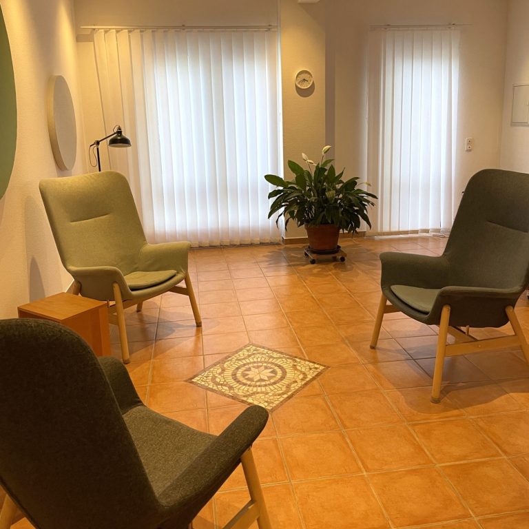 Die Praxisräume und die Toilette sind barrierefrei zugänglich. Im Eingangsbereich gibt es eine Teeküche und Sitzmöglichkeiten. Falls Sie mal etwas früher kommen, können Sie dort in Ruhe mit einem warmen Tee oder einem kühlen Glas Wasser warten.